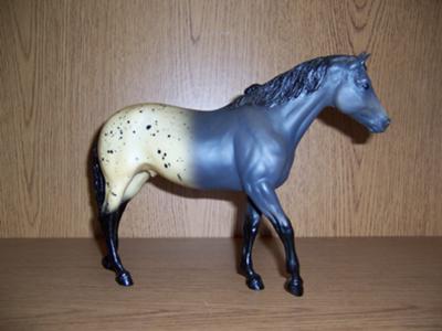 I put three of the appaloosas together for this page. The gray one is San Domingo, #703. The chestnut is Blanket Appaloosa, #823. The black appaloosa is Running Stallion, #168. All are in good condition, although none are in boxes.