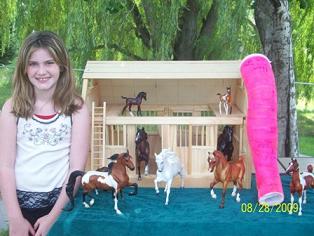 Due to a riding accident, this year more than ever I have enjoyed my Breyers. While riding at a 4H practice on May 21st, 2009, I traded horses with another rider. Her horse reared up and over on me and I ended up breaking my lower leg. It was really scary, I ended up with an ambulance ride, a cast up to my thigh and a wheelchair. Later I had to have surgery and a plate put in my leg.