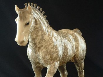 The picture to the right is of the retired Clydesdale Breyer Horse mold in dapple gray. This model is the muscle version that Reeves International started making around 1962.